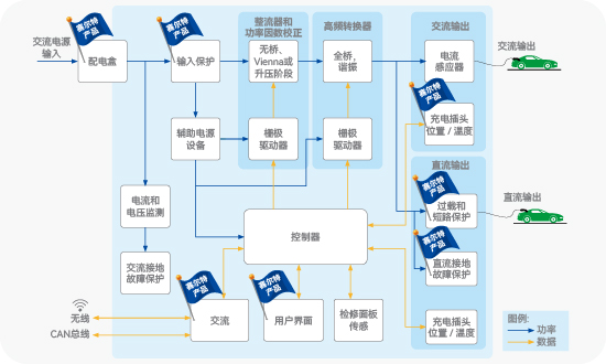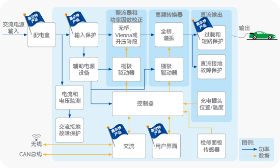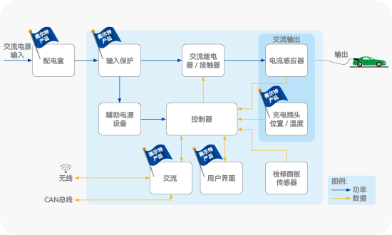 提供交流电,车辆内部的充电器(OBC,On-Board Charger)将交流电转换为直流电为电池充电。