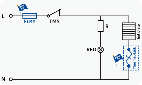加热线圈工作时会产生高温,若发生故障(如温控器失效、散热不良或电路异常),可能导致温度失控。热熔断器在温度达到预设阈值时永久断开电路,切断电源,防止火灾、设备烧毁或用户受伤。