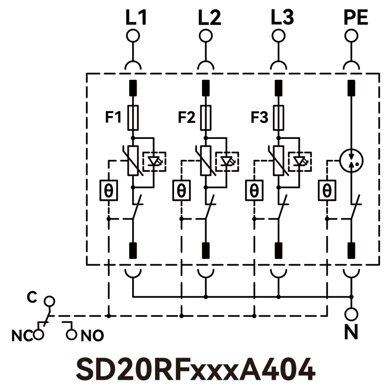 2. 如果出现”故障状态”的指示,则表示SPD损坏。 请用相同型号的SPD替换。