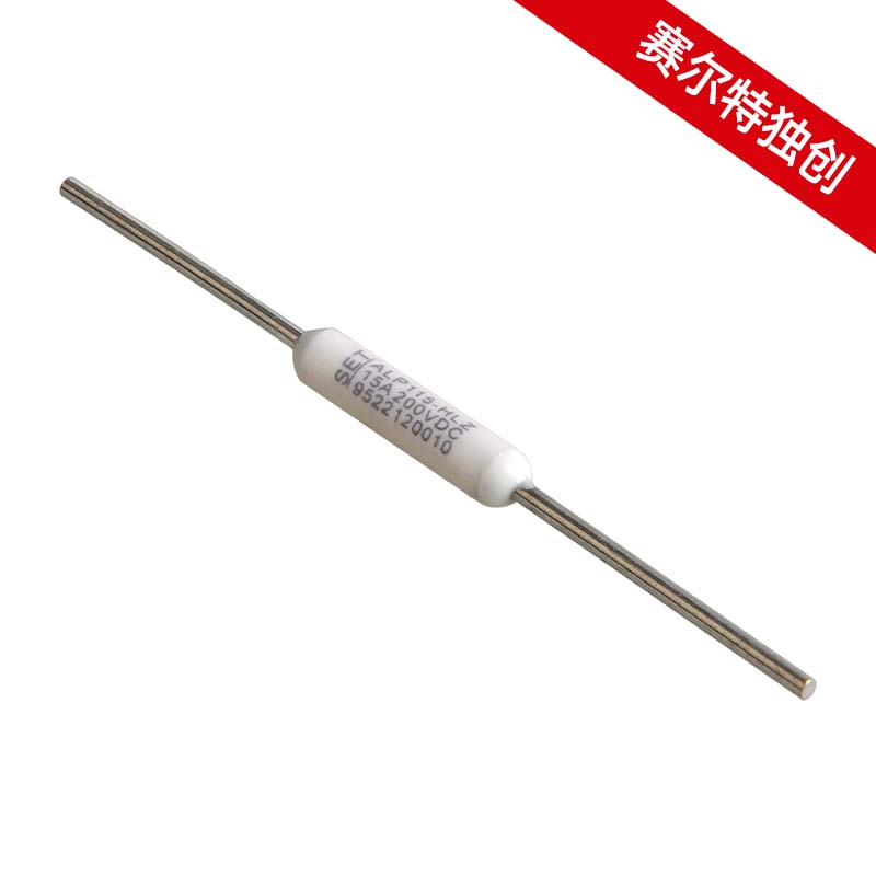 直流温度保险丝-合金型Direct Current Thermal-Link Alloy Type(DC-ATCO)是一种利用低熔点合金(即热元件)受热达到设定熔断温度时熔断的特性来控制熔断电路的温度保险丝。直流温度保险丝-合金型(DC-ATCO)主要由电极片、外壳、低熔点合金(即热元件)、助熔断剂、熔丝、填充料和封口树脂组成。 直流温度保险丝-合金型(DC-ATCO)广泛应用于电气设备及电动汽车的过温保护。在正常工作情况下,低熔点合金(即热元件)串接于两电极引脚之间,当直流温度保险丝-合金型(DC-ATCO)感受到异常发热并达到设定的熔断温度时,低熔点合金(即热元件)熔化,并在助熔断剂的作用下快速收缩至引脚两端,从而断开电路。 赛尔特公司(SETsafe | SETfuse)的直流温度保险丝-合金型(DC-ATCO)分为轴向型和径向型两种结构,额定动作温度:(76 ~ 230)°C、额定电流:(1 ~ 200)A,额定电压:(24 ~ 850)VDC,安规认证包括:UL、cUL、CCC、CB,符合RoHS、REACH要求。