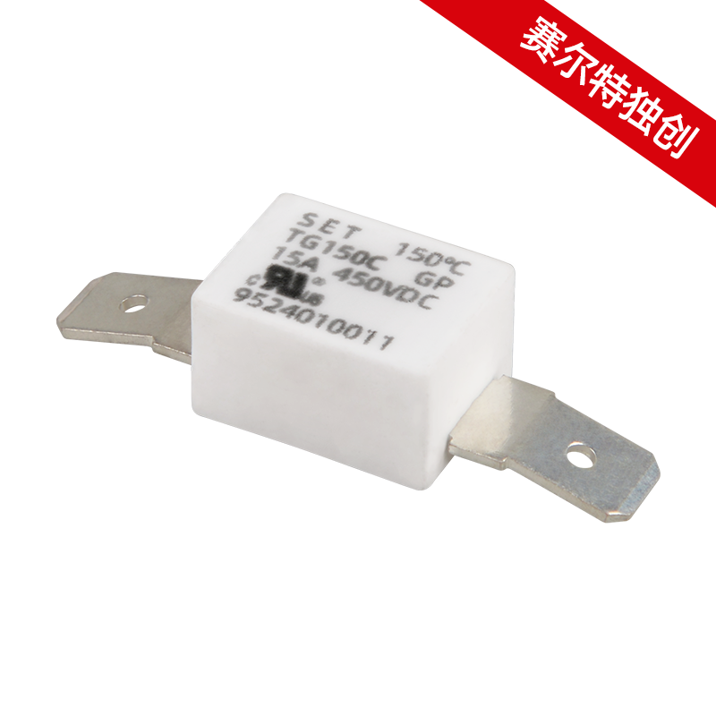 直流温度保险丝-合金型Direct Current Thermal-Link Alloy Type(DC-ATCO)是一种利用低熔点合金(即热元件)受热达到设定熔断温度时熔断的特性来控制熔断电路的温度保险丝。直流温度保险丝-合金型(DC-ATCO)主要由电极片、外壳、低熔点合金(即热元件)、助熔断剂、熔丝、填充料和封口树脂组成。 直流温度保险丝-合金型(DC-ATCO)广泛应用于电气设备及电动汽车的过温保护。在正常工作情况下,低熔点合金(即热元件)串接于两电极引脚之间,当直流温度保险丝-合金型(DC-ATCO)感受到异常发热并达到设定的熔断温度时,低熔点合金(即热元件)熔化,并在助熔断剂的作用下快速收缩至引脚两端,从而断开电路。 赛尔特公司(SETsafe | SETfuse)的直流温度保险丝-合金型(DC-ATCO)分为轴向型和径向型两种结构,额定动作温度:(76 ~ 230)°C、额定电流:(1 ~ 200)A,额定电压:(24 ~ 850)VDC,安规认证包括:UL、cUL、CCC、CB,符合RoHS、REACH要求。