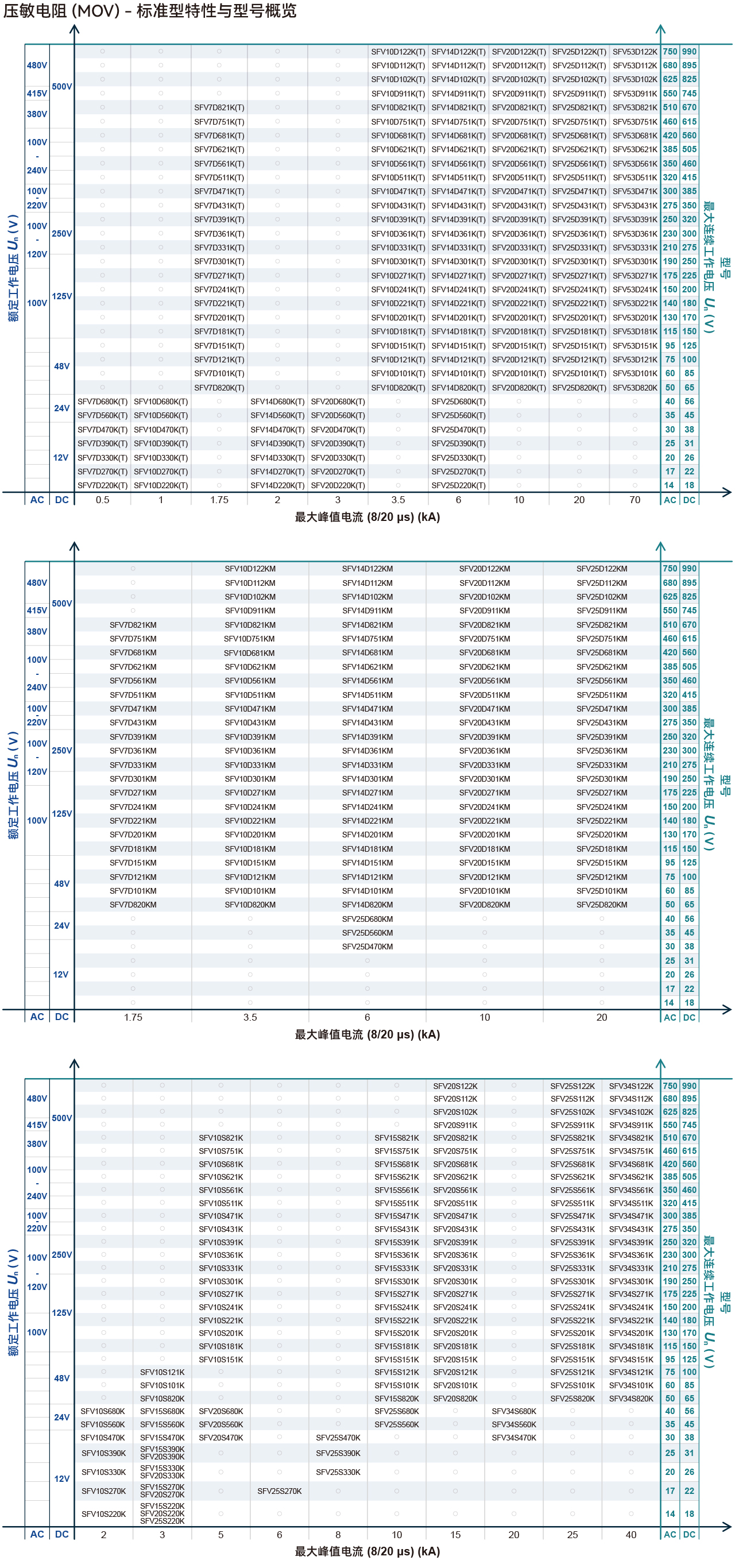 标准型 / 芯片 / 高浪涌冲击型 / T1防雷型芯片 / T2防雷型芯片 / 36个系列