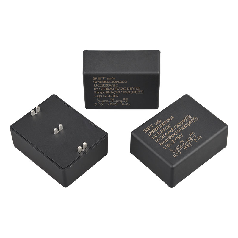 电涌保护器Surge Protection Device(SPD),也叫防雷器,是一种为各种电子设备、仪器仪表、通讯线路提供安全防护的电子装置。当电气回路或者通信线路中因为外界的干扰突然产生尖峰电流或者电压时,电涌保护器(SPD)能在极短的时间内导通分流,从而避免电(浪)涌对回路中其他设备的损害。 电涌保护器(SPD)广泛应用于电源线路、信号线路的过电压保护。对异常电压的吸收,雷击电(浪)涌的吸收等发挥着很大的作用。 赛尔特公司(SETsafe | SETfuse)的电涌保护器(SPD)主要由压敏电阻(MOV)、气体放电管(GDT)、可插拔模块、底座及内外部金属构件组成。标称放电电流:(20 ~ 30)kA;最大连续工作电压:(150 ~ 1000)VAC;最大连续工作直流电压:(180 ~ 1500)VDC ,安规认证:UL、cUL、TUV、CE、CQC、TEL;符合RoHS、REACH要求。