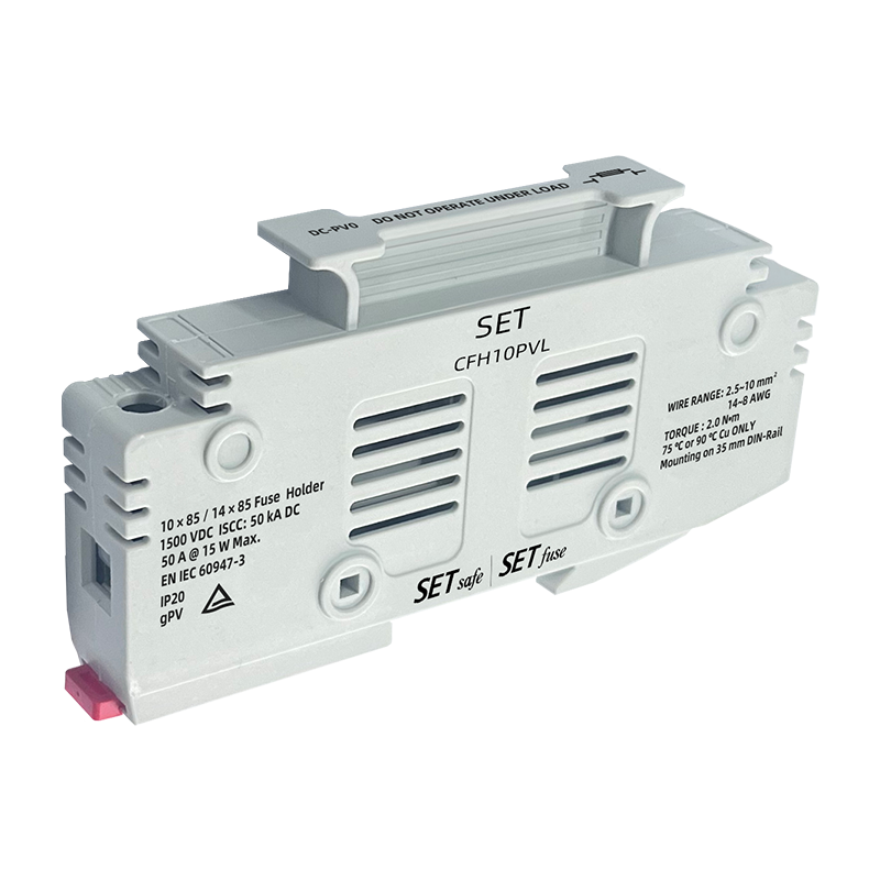 赛尔特(SETsafe | SETfuse)公司的CFH 系列光伏熔断器底座专门设计用于保护光伏系统。该款产品具有方便安装的特性。其优质的材 料提供了坚固的物理特性,在持续高温环境下提供可靠保护。
