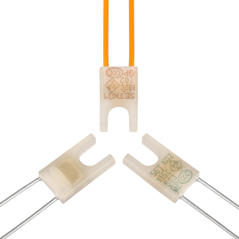 直流温度保险丝-合金型(DC-ATCO)广泛应用于电气设备及电动汽车的过温保护。在正常工作情况下,低熔点合金(即热元件)串接于两电极引脚之间,当直流温度保险丝-合金型(DC-ATCO)感受到异常发热并达到设定的熔断温度时,低熔点合金(即热元件)熔化,并在助熔断剂的作用下快速收缩至引脚两端,从而断开电路。