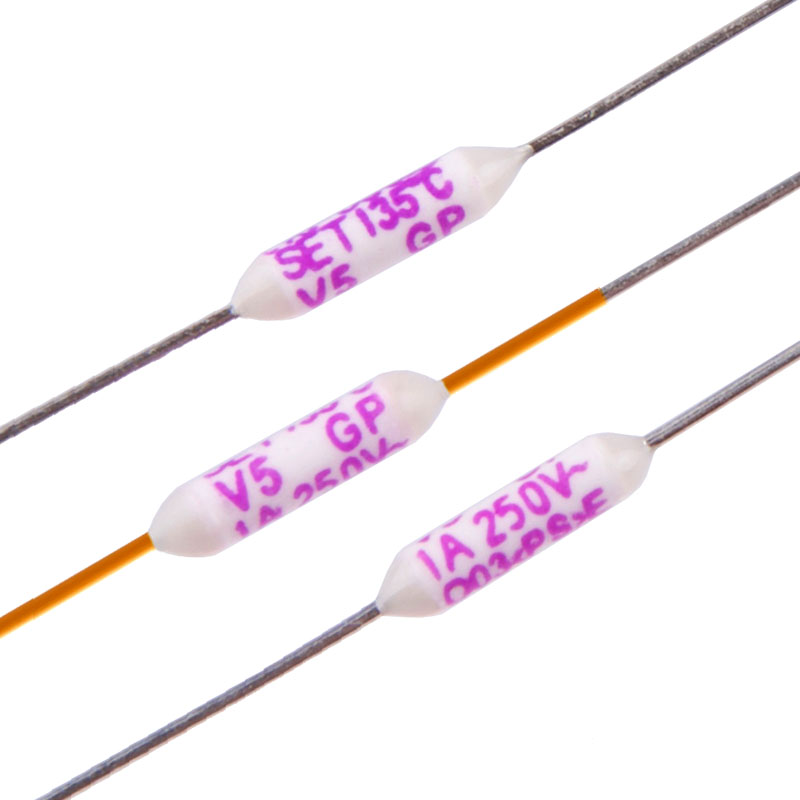 直流温度保险丝-合金型(DC-ATCO)广泛应用于电气设备及电动汽车的过温保护。在正常工作情况下,低熔点合金(即热元件)串接于两电极引脚之间,当直流温度保险丝-合金型(DC-ATCO)感受到异常发热并达到设定的熔断温度时,低熔点合金(即热元件)熔化,并在助熔断剂的作用下快速收缩至引脚两端,从而断开电路。