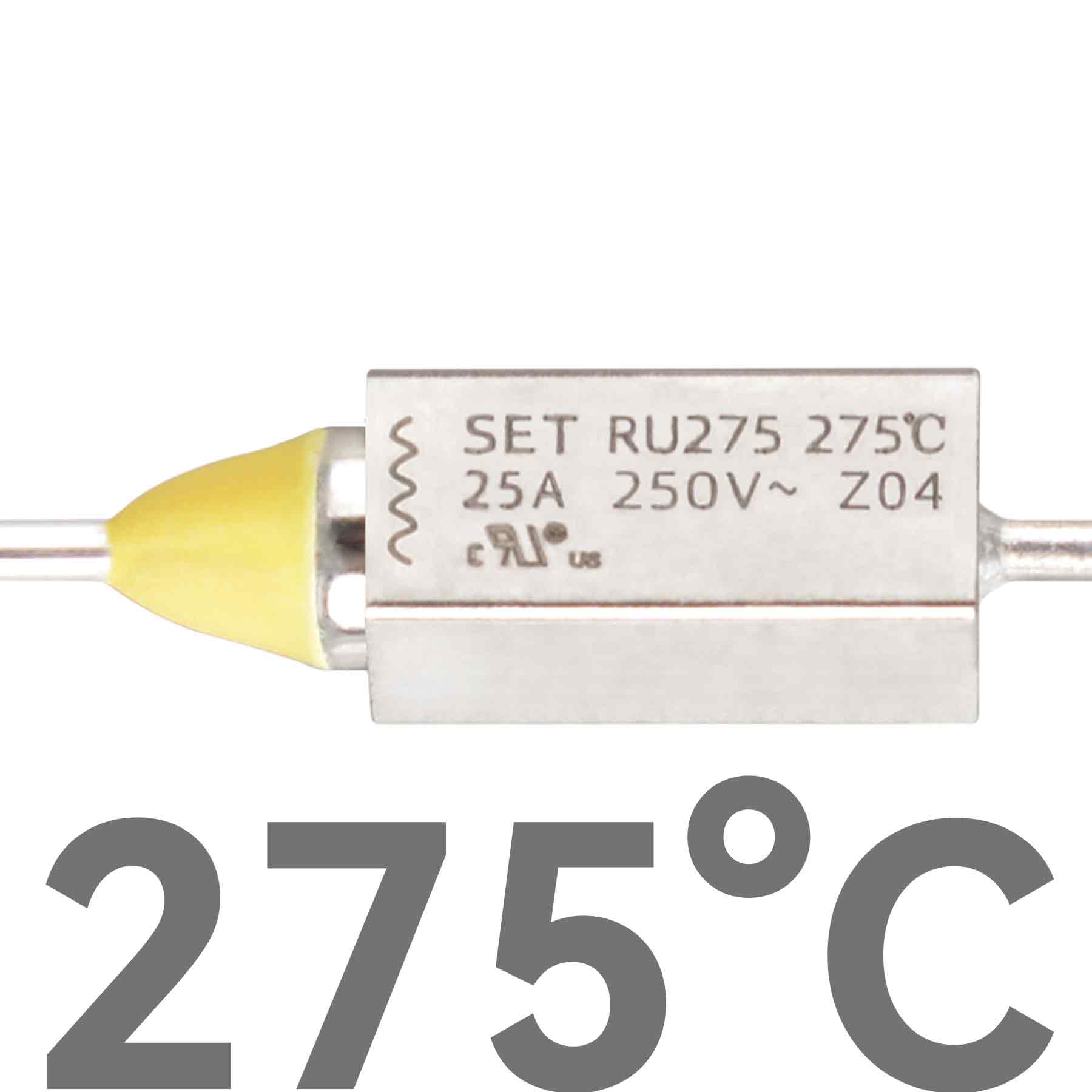 温度保险丝-有机物型 Thermal-Link (OTCO)-Organic Type 是一种以有机化合物作为感温材料且一次性动作而不可复位的温度敏感元件。在正常工作情况下,触点线与可动电极保持接触,电路处于导通状态, 当OTCO感受到异常发热并达到设定的熔断温度时,有机物型感温体熔化,可动电极在直簧的作用下与触点线脱离,从而断开电路。OTCO主要由金属外壳、弹簧、可动电极和感温体等组成。 OTCO产品广泛应用于电气设备的过温度保护。 赛尔特公司 (SETsafe | SETfuse) 的OTCO产品规格:额定动作温度从72 ℃到263 ℃;额定电流:10 A,15/16 A;安规认证包括:UL,cUL,VDE,CCC,KC,PSE,符合 RoHS 和 REACH 。