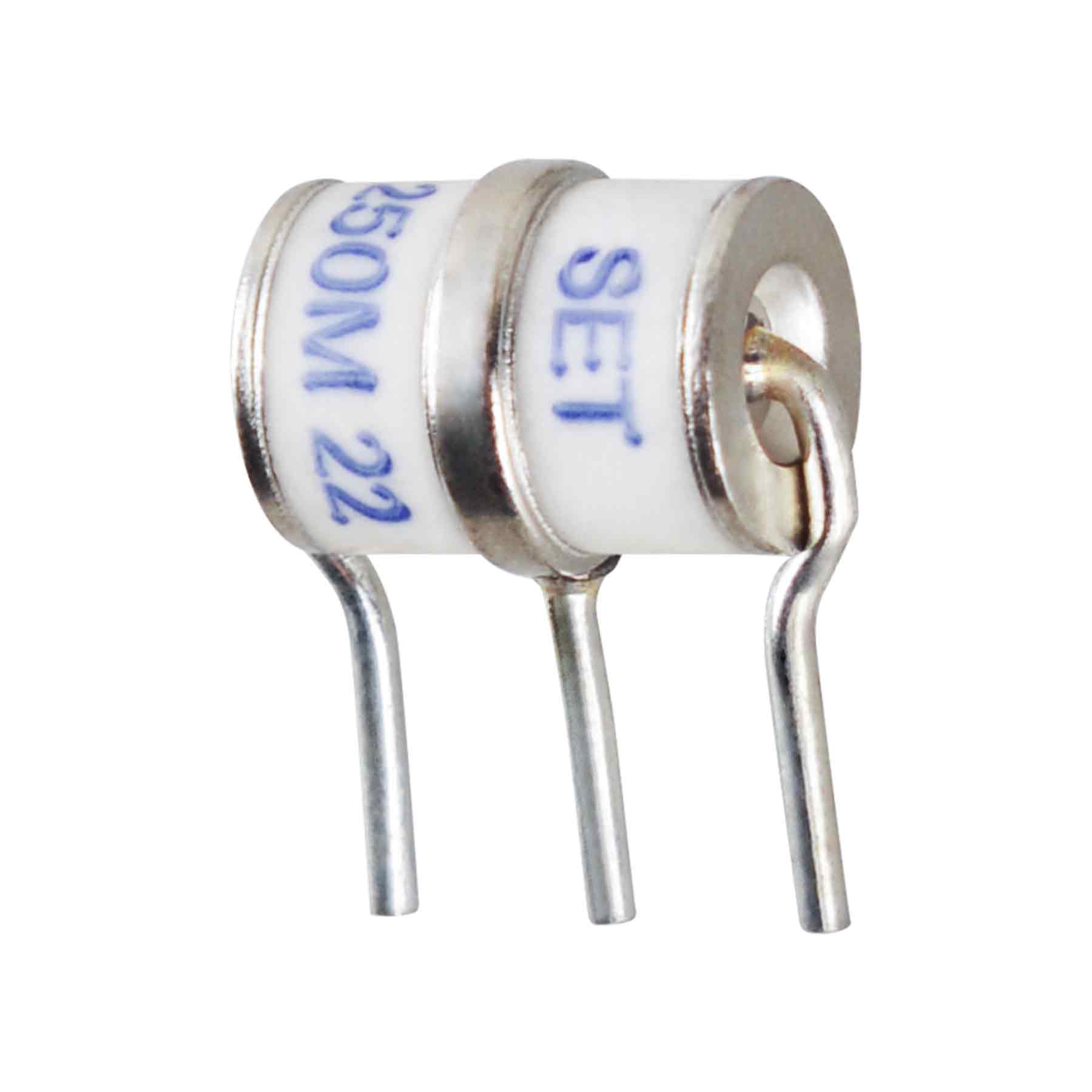 气体放电管 Gas Discharge Tube(GDT)是一种单间隙或多间隙的开关型过电压保护器件。在正常情况下,GDT是处于高阻状态;当受到浪涌冲击时,GDT将从高阻抗状态变为低阻抗状态,并将浪涌能量释放到大地,降低电路残压,进而保护设备电路或人身免受瞬态过电压的危害。GDT是在金属电极、金属化陶瓷、惰性气体或与其它混合气体经过高温封接而成。 气体放电管(GDT)被广泛应用在信号、电源及各类端口的过压防护。 赛尔特公司(SETsafe | SETfuse)的气体放电管产品电压70 ~ 4500 V;通流(@8/20 μs)0.5 ~ 200 kA;安规认证包括:UL、cUL、TUV;满足RoHS、REACH。