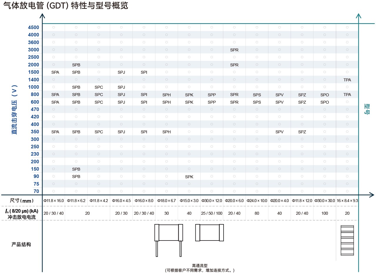 可选赛尔特气体放电管 (GDT) 产品系列: