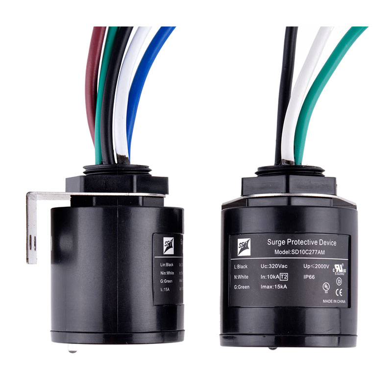 由于LED路灯耐受浪涌的冲击能力较低,LED模块或驱动器在浪涌的冲击下会产生局部或者完全失效。为了确保LED路灯寿命和可靠性,避免不必要的维护,应采用周全的、有效的浪涌保护。赛尔特LED电涌保护器专门为户外照明设计。产品的抗电涌水平符合IEEE C62.41.2 位置类别 C 高暴露等级的要求 ,保护LED 路灯免受雷电浪涌的损坏 。SD10C系列内置热保护,能够在承受持续过电压或者内部压敏电阻劣化时安全失效。
