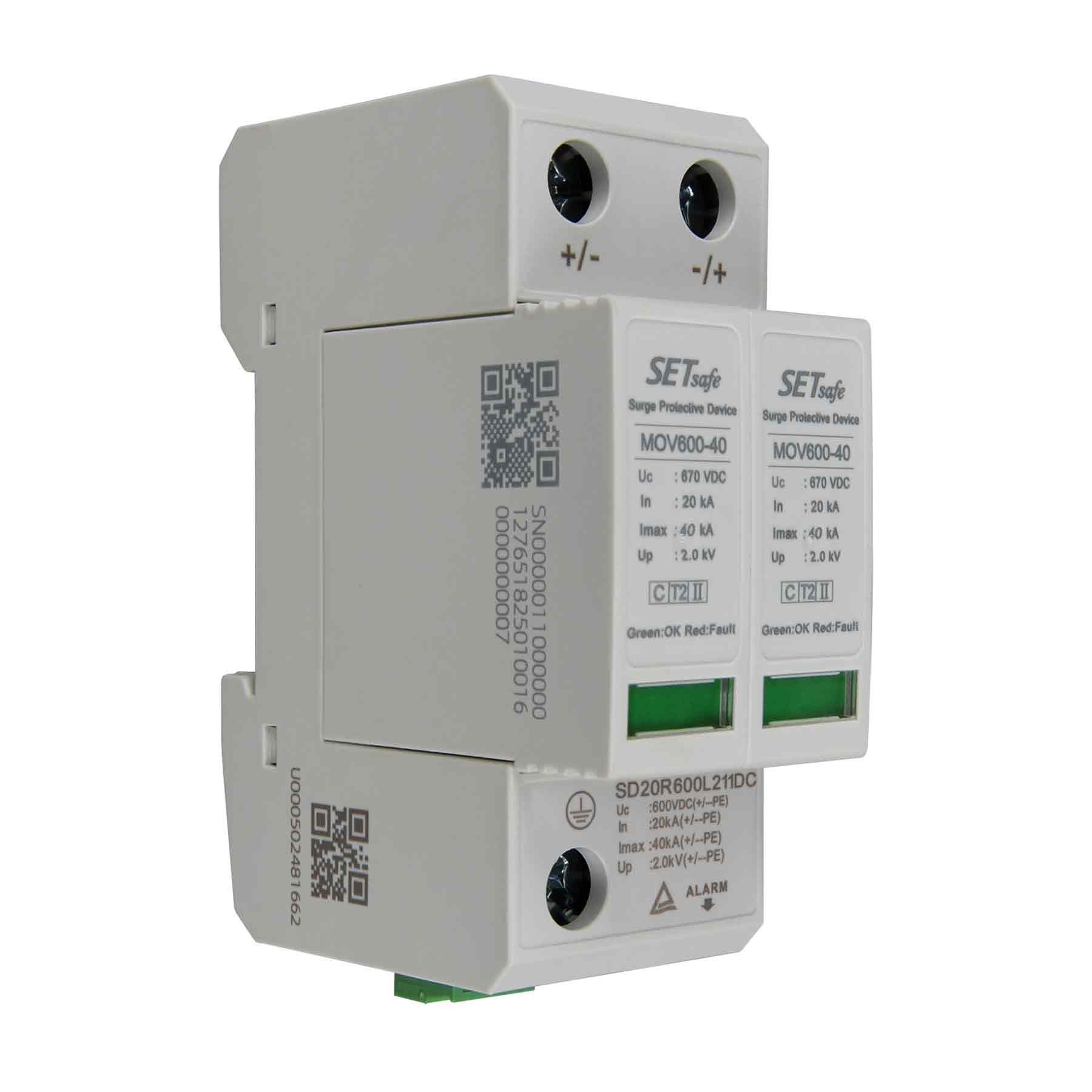 电涌保护器Surge Protection Device(SPD),也叫防雷器,是一种为各种电子设备、仪器仪表、通讯线路提供安全防护的电子装置。当电气回路或者通信线路中因为外界的干扰突然产生尖峰电流或者电压时,电涌保护器(SPD)能在极短的时间内导通分流,从而避免电(浪)涌对回路中其他设备的损害。 电涌保护器(SPD)广泛应用于电源线路、信号线路的过电压保护。对异常电压的吸收,雷击电(浪)涌的吸收等发挥着很大的作用。 赛尔特公司(SETsafe | SETfuse)的电涌保护器(SPD)主要由压敏电阻(MOV)、气体放电管(GDT)、可插拔模块、底座及内外部金属构件组成。标称放电电流:(20 ~ 30)kA;最大连续工作电压:(150 ~ 1000)VAC;最大连续工作直流电压:(180 ~ 1500)VDC ,安规认证:UL、cUL、TUV、CE、CQC、TEL;符合RoHS、REACH要求。