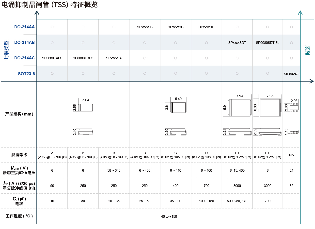 赛尔特(SETsafe | SETfuse)的电涌抑制晶闸管(TSS)特点:
